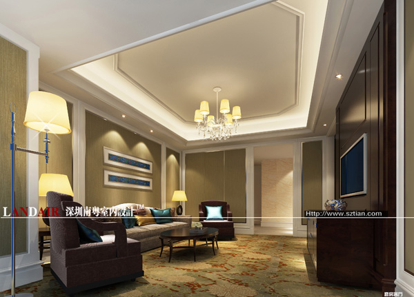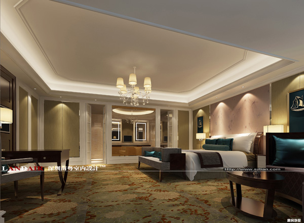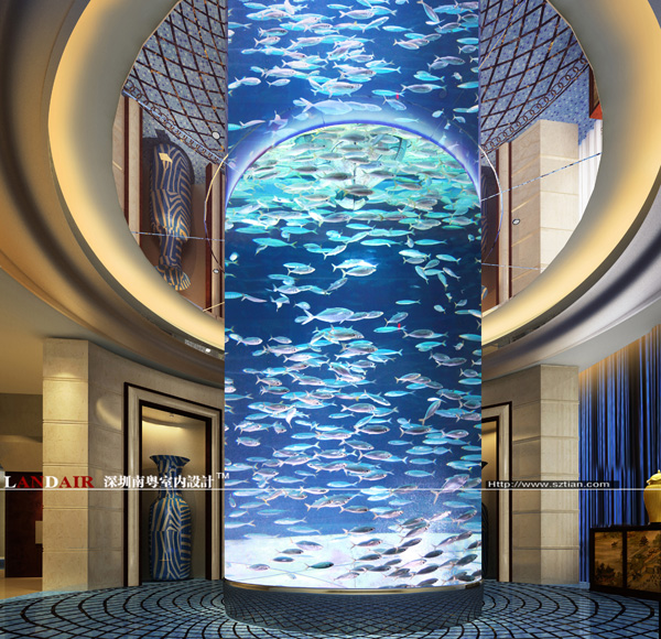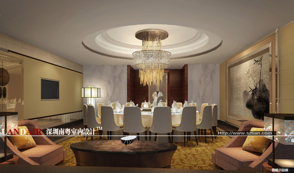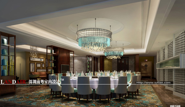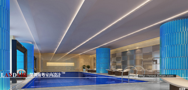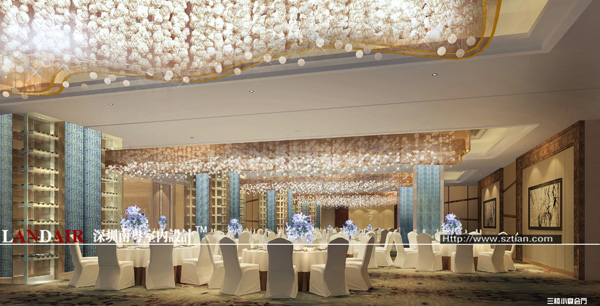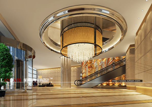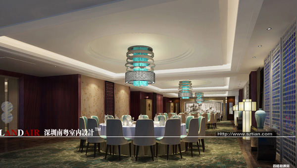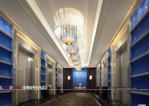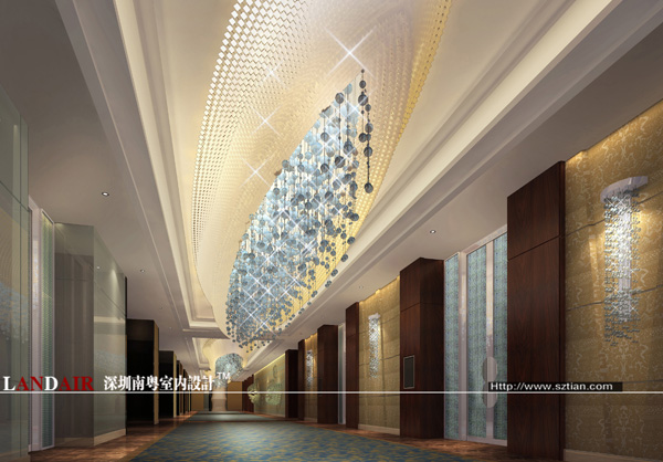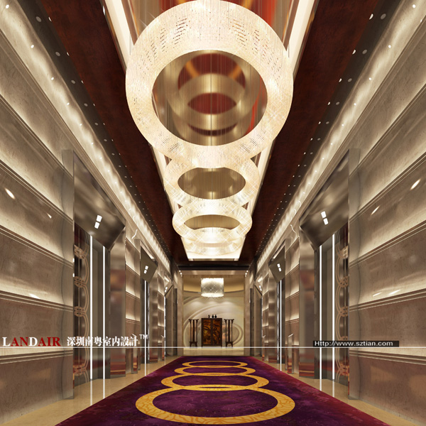 酒店從設(shè)計到功能、外觀都較現(xiàn)代,并很好的與當(dāng)?shù)氐奈幕厣嘟Y(jié)合,為人們打造了一個娛樂休閑的絕佳場所。大堂的天花板采用多層次葫蘆造型,葫蘆的前端懸掛著一個七彩色的水晶燈,燈身環(huán)繞一個酒桶式的水晶燈套,葫蘆的尾端用漸變色的不規(guī)則燈柱與藍(lán)綠色馬賽克格子式的圓盤相邊,給人強大的視覺沖擊,震撼人心;地面是擴散型的經(jīng)緯交格印花與之相呼應(yīng),融合當(dāng)?shù)氐奈幕厣瑯?gòu)成一個特殊的弧形文化空間。大堂吧延伸大堂的弧弄藝術(shù),弧形燈套式的印花米色石柱,相同造型的接地?zé)簦钌瞪嘲l(fā)上點綴著靈動的藍(lán),以翠竹做背景的落地窗,營造了一種輕松而優(yōu)雅的空間享受氣氛。餐廳的設(shè)計簡約大方,沒有了豪華搶眼的裝飾,在一片深色圍繞下設(shè)計兩個彩色的連接地面和天花板的藝術(shù)造型,烘托了一個優(yōu)雅又不失活躍的用餐氛圍。宴會廳向人們展現(xiàn)了一個極致奢華的空間,布滿水晶吊燈的天花板似星光璀璨,清一色的白色家具搭配淺紫色的鮮花擺飾,明顯的繁與簡的對比,形成一種別樣的高檔空間。電梯間擇用與大堂相呼應(yīng)的弧形墻面,地毯花紋、梯門印花與天花板燈飾相統(tǒng)一,配以傳統(tǒng)文化氣息的點綴,體現(xiàn)酒店奢華大氣的同時,在一定程度上緩解了人們等待時候的焦躁。游泳池是水的世界,在這里的,我們建造了一個藍(lán)白的空間,使來此休閑的人們猶如徜徉于天地之間。