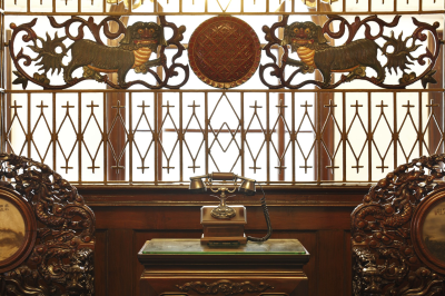 Opposite the main entrance is the staircase to the second storey, railings on both sides are carved exquisite patterns like Two Lions Playing with a Ball, The Peacock Spreads Its Tail, An Evergreen Tree and some traditional Chinese symbols like Ji Yang (a Chinese character symbolizes good fortune), Shuang Xian (double lines), Shuang Huan (chain of rings), Fang Sheng (a piece of jewelry), part of the furniture is very typical mahogany with unique Chinese characteristics. All of them show the old owner’s passion for the Chinese culture. There is a spacious outdoor terrace on the second storey, embellished by candlestick-like railing and shuttered wooden windows.