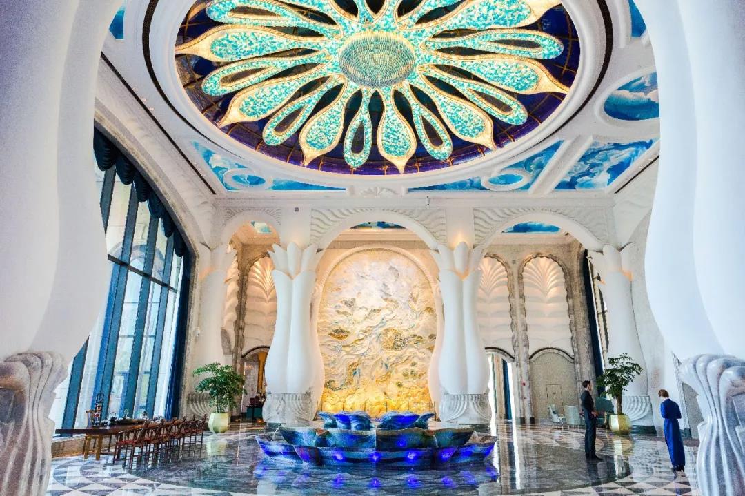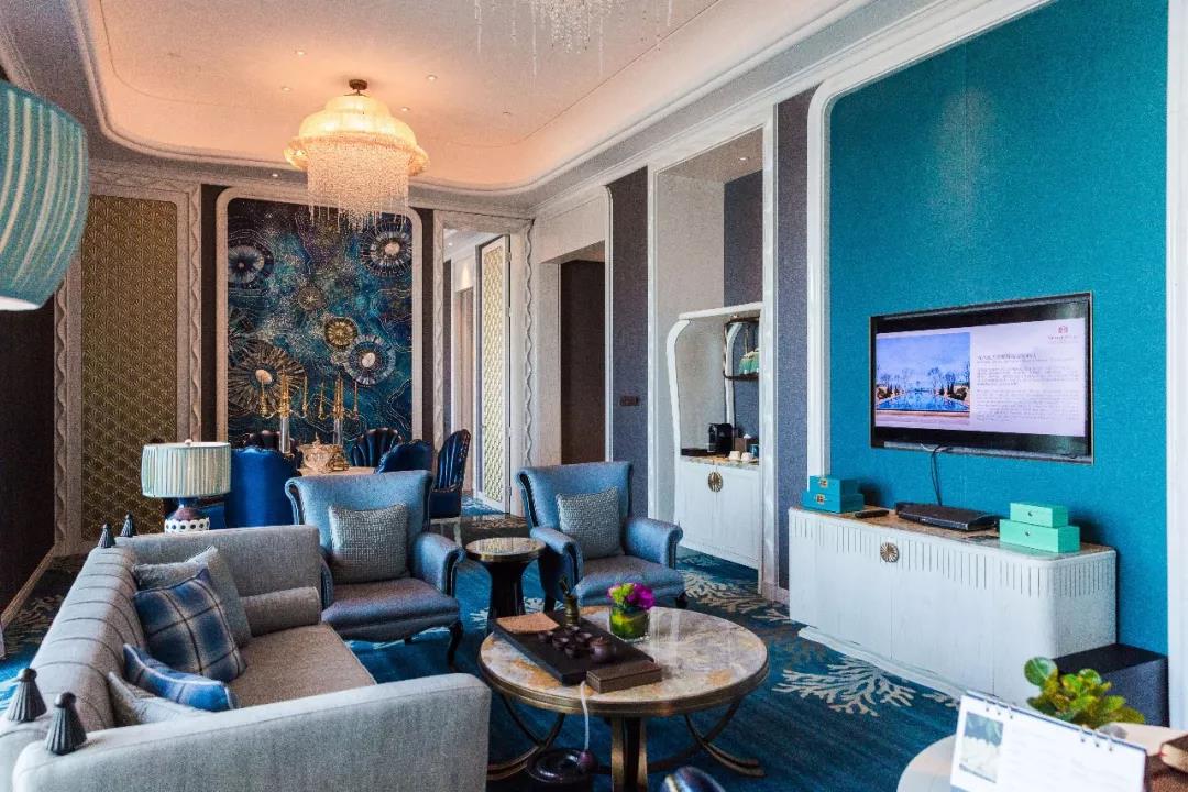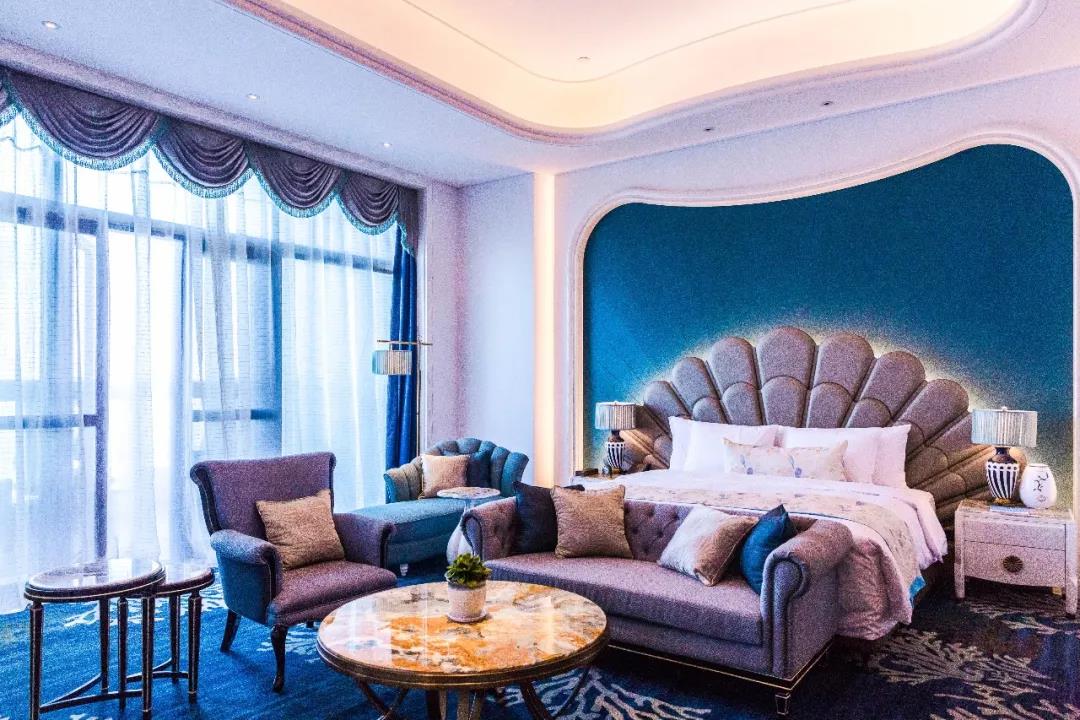 以藍白為主基調色的酒店給人以清新撲鼻的海洋氣息,大堂仿佛海底宮殿,175間精致典雅的客房及套房亦如瑤宮貝闕。每間客房都擁有超大空間,基礎客房就達到了驚人的70平方米,景觀落地窗外則是私人陽臺,除了近觀歐式花園,更可遠眺無邊無際的迷人海景。沒錯,這里的每一間房都是無敵海景房。