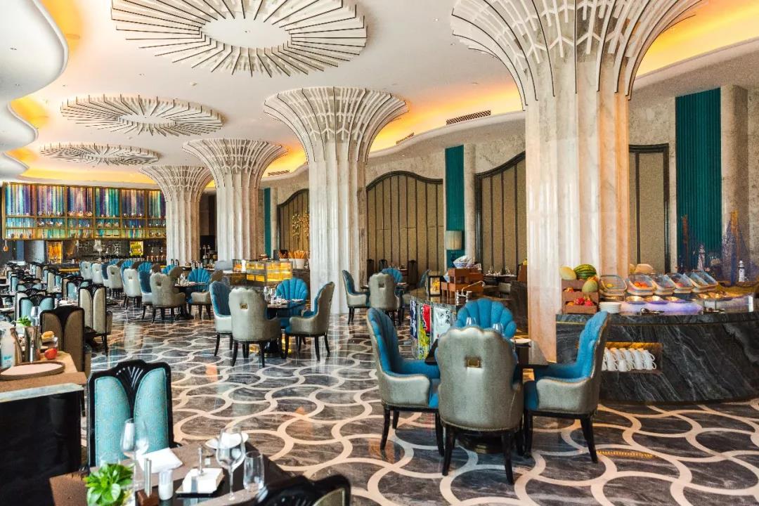 酒店的餐廳設計同樣美輪美奐,仿佛仙界般的奇妙場景,除了滿足賓客挑剔的味蕾,更讓人一飽眼福。3間風格獨特的餐廳及1個大堂酒廊為不同需求的客戶服務,美食匯全日餐廳、“和”日式料理和品珍中餐廳提供不同風味美食,而在中餐廳中更設有一個可單桌容納30人的超大包房。