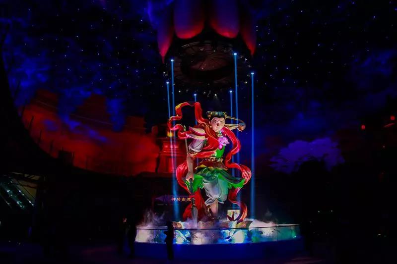 電影樂園建筑面積近3萬平米,在三大樂園中投資最大、科技含量最高,設有3D動感影院“龍宮奪寶”、3D互動“靈劍封神”兩大體驗項目,游客游走在“看得見、摸得著、進得去”的時空體驗中,與電影主人公穿越相遇,虛實結合十分神奇。