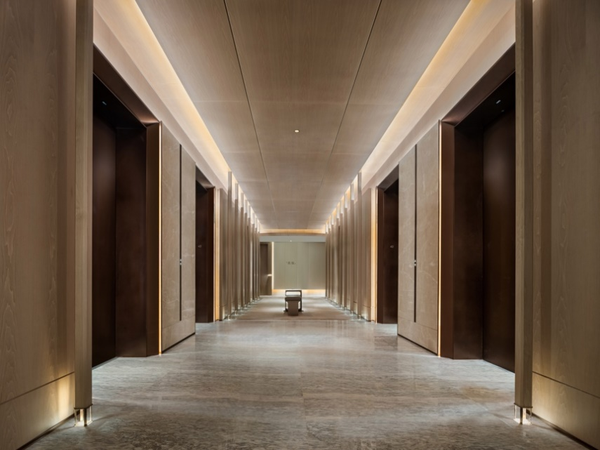 客人從大堂乘電梯,可直達35層明亮、潔凈、舒適的空中大堂。空中大堂的設(shè)計從長沙的傳統(tǒng)城市建筑中汲取靈感;將長沙古村落樸素的色彩轉(zhuǎn)變?yōu)槭婢彙⒅行缘纳{(diào),而門窗錯落有致的傳統(tǒng)房屋則通過簡潔的建筑線條,描繪出一種靜謐的設(shè)計語言。