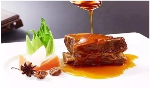 余師傅嘗試著用中餐的做法來做牛排,將牛排中用到的很多香料,換成蔥姜蒜,把原來的腌制、烤制手法,換成燉煮、紅燒,因為家人愛吃咸甜,他加入潮州鹽梅,味道不對,又改成話梅......然后,咸、甜、酸的口感層次就出來了。