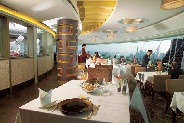 餐廳每2小時(shí)旋轉(zhuǎn)一圈,透過(guò)全透明的弧形落地窗放眼望去,人民公園、南京路步行街、上海美術(shù)館、上海大劇院、蘇州河、黃浦江和外灘的景色盡收眼底,客人無(wú)不被這里宏偉壯觀的景色所震撼。從這一獨(dú)特的視角來(lái)欣賞上海全景,無(wú)疑是每個(gè)上海人以及到上海的游客不容錯(cuò)過(guò)的獨(dú)特體驗(yàn)。