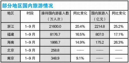 浙江省1-9月累計接待入境旅游者494.1萬人次,同比增長20.3%;旅游外匯收入29.1億美元,同比增長22.7%;全省有組織出境旅游者66.7萬人次,同比增長58.1%;根據抽樣調查測算,19月份累計接待國內旅游者21600萬人次,同比增長20.4%,實現國內旅游收入2214.8億元人民幣,同比增長5.2%。