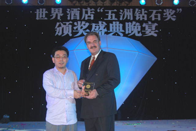 世界酒店聯(lián)盟創(chuàng)始人兼執(zhí)行主席吳軍林為獲獎?wù)哳C獎
