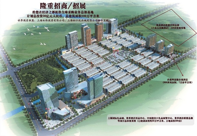 未來的上海國際禮品城主要項目為“世界酒店用品中心”、“中國進(jìn)出口禮品展貿(mào)中心”、“中國東盟自貿(mào)區(qū)上海 貿(mào)易中心”、“世界酒店聯(lián)盟中國總部(白金五星級酒店)”等,位于上海市松江區(qū)洞涇鎮(zhèn),擬規(guī)劃建筑面積100萬平方米, 計劃總投資30億元人民幣。首期建設(shè)占地290畝,擬建筑面積48萬平方米。全部建成后將成為全國規(guī)模最大,集批發(fā)、零售、會展、研發(fā)、電 子商務(wù)、國際貿(mào)易于一體的智能化綜合性禮品與酒店用品展貿(mào)中心。以先進(jìn)的創(chuàng)新理念和開發(fā)管理模式,通過全面整合以長三角為核心的國際 國內(nèi)產(chǎn)業(yè)資源,高起點規(guī)劃、高標(biāo)準(zhǔn)建設(shè)、高質(zhì)量管理,使其逐步發(fā)展成為國際化的集產(chǎn)品研發(fā)、加工制造、檢驗檢測、展銷貿(mào)易、物流配送 、售后服務(wù)、金融結(jié)算、人才培養(yǎng)、生活安居為一體的全球重要的禮品與酒店用品采購中心。