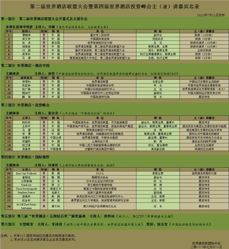 第二屆世界酒店聯盟大會暨第四屆世界酒店投資峰會主(演)講嘉賓名錄