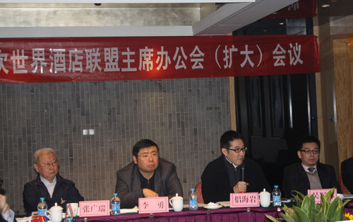 為了更好地在新時期做好聯盟各項重要工作,促進中國與國際酒店業的繁榮與發展,進一步做好世界酒店聯盟的各項工作,世界酒店聯盟于2011年10月30日在北京召開第二次世界酒店聯盟主席辦公會(擴大)會議。出席本次會議的有酒店地產投資商、國際著名酒店集團、國企及民營酒店管理公司的董事長和總裁,主要代表有:中國旅游協會副會長、錦江國際集團董事高級副總裁、昆侖飯店董事長侶海巖、萬豪國際集團中國區發展副總裁林聰、金陵酒店管理公司董事長胡明、三清山旅游集團董事長陳斌、粵海國際酒店管理集團董事長鄭瑋玲、天倫酒店管理集團總裁吳曉燕,同時特邀出席的還有中國社科院、旅游衛視以及中國旅游報等有關領導和專家參加本次會議。