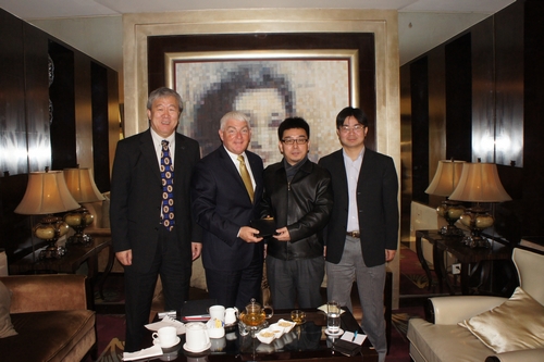 12月2日上午十點整,上海大廈,世界酒店聯盟主席吳軍林先生與佛羅里達國際大學旅游酒店管理學院院長Hampton Mike先生、趙金林教授,就中國酒店旅游業的培訓班以及證書班的合作事宜進行初步商談。