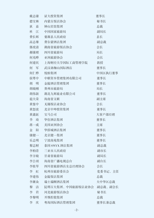2013第三屆世界酒店聯(lián)盟大會特邀領(lǐng)導(dǎo)及免費嘉賓名單