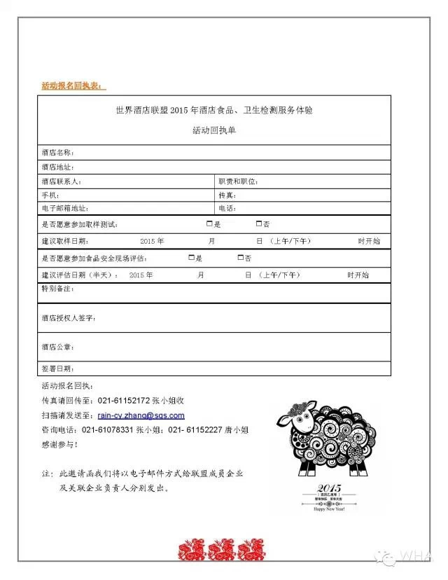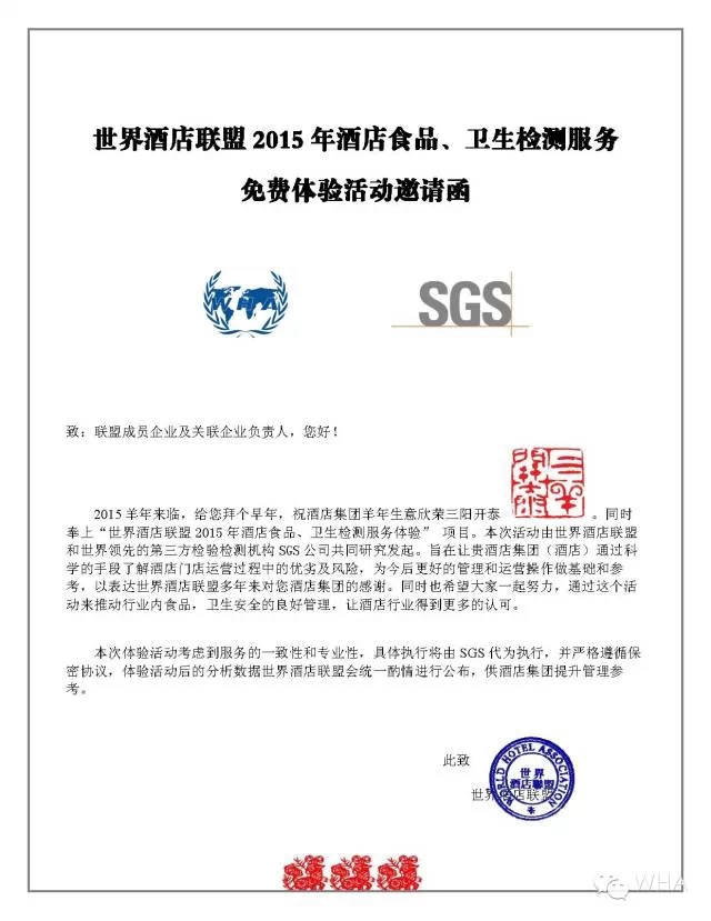 聯盟2015年酒店食品、衛生檢測服務免費體驗活動邀請函