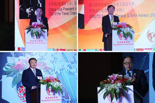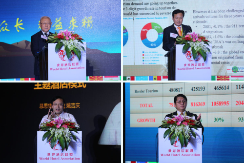 本屆大會(論壇)的主題為“世界酒店業發展的競爭與融合”。為期兩天的行業盛會匯聚了世界酒店業的頂級領袖人物以及相關行業的重要政府領導,進行了一場關于酒店業發展的觀點與思想的碰撞盛會。17日上午,第四屆世界酒店聯盟大會暨第八屆世界酒店論壇在世界旅游組織、中國、瑞士、意大利、印度等國家旅游部(署、局)及行業協會高官的致辭中拉開序幕,聯盟主席團成員集體亮相共同見證了開幕儀式,CCTV-發現之旅、京都世紀影視文化有限公司、溫德姆國際酒店集團等知名企業和重要機構同世界酒店聯盟發布并簽訂了合作文本。下午的主報告會中,聯盟大會的領導發表了振奮人心的致辭,有關國家代表也發表了精彩的演講。值得一提的是,中國旅游研究院院長、博士生導師、教授戴斌,世界酒店聯盟顧問、聯盟專家與學術委員會主席、中國社科院旅游研究中心創始人、名譽主任張廣瑞,世界酒店聯盟顧問、中國國家旅游局原綜合司司長張堅鐘,慕思集團總裁、中國酒店供應商五星聯盟會長姚吉慶,韓國旅游觀光協會副會長、世界酒店聯盟副主席崔碩浩,緬甸國家旅游聯合會副主席、世界酒店聯盟副主席貌貌瑞,美國弗羅里達大學酒店管理學院研究生部主任、世界酒店聯盟駐美秘書長趙金林以及俄羅斯、意大利、瑞士、希臘等國家旅游部(署、局)駐中國首席代表等二十多位中外業界頂級專家或權威學者同與會者分享了極具價值的理論和思想成果。