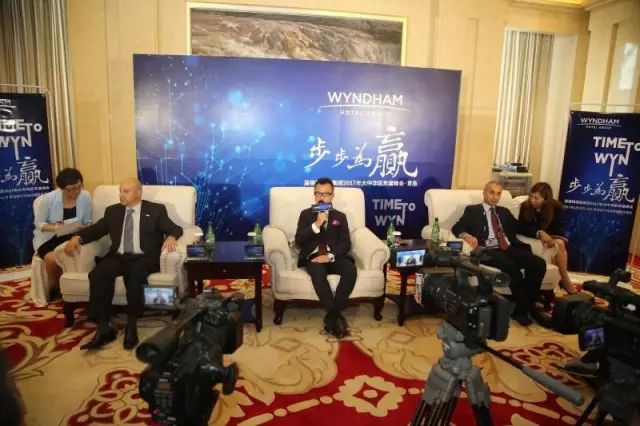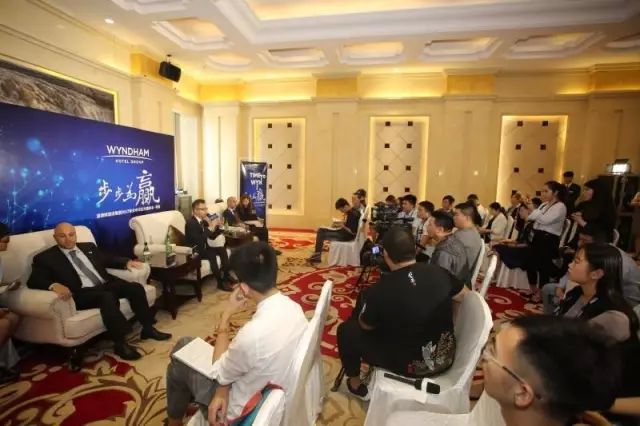 劉晨軍與溫德姆國際運營副總裁Anthony Emanuelo以及溫德姆國際采購副總裁Gurvinder Patara一同接受國內幾十家一線媒體的采訪。