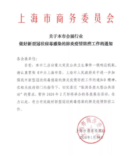 展”主辦方就“新型冠狀病毒所引發的肺炎疫情”相關事宜所發布的最新公告。