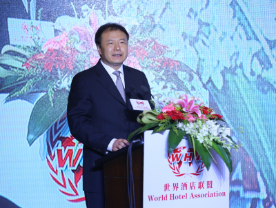 真誠地希望我們飯店業的廣大同仁來加強業界的交流與合作,整合資源,實現優勢互補和合作共贏。那么上星期我在湖南也簡單地講過一個概念,飯店業現在需要創新,需要合作共贏,這個世界沒有誰能離開誰。我們為什么不能把資源拿出來進行合作,實現共贏。我們不該關注飯店集團的擴張數量,不是越多越好,而應該考慮在擴張當中如何把自己的價值、自己的品牌做好,如何突顯自己的特色,進而留住客戶。如果你不關心他、不在乎他,在互聯網的時代,客戶指尖一點,忠誠度就流失了。我認為,業界的同仁應該合作起來,共同面對各種挑戰和相關行業的擠壓,這是良性的且在改革當中的,我們必須要面對發展當中不可或缺、不可逾越的變革。我們要切實維護賓客的合法權益和行業的共同利益,反對不正當競爭,維護市場的正常秩序,為旅游業的健康發展貢獻力量。最后,預祝世界酒店聯盟大會暨世界酒店論壇圓滿成功!謝謝大家!