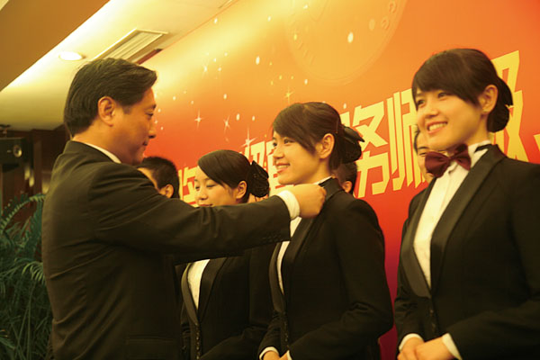 如今,各類專業化隊伍的打造,也逐漸被提上了杭州開元名都的日程。高級宴會服務師、4S工程技術特工、侍酒師、點菜師、會議金鑰匙,各服務區域的特色專業化服務崗位一一開始培養。而其中,作為飯店最早開始建設的一支專業化服務隊伍,高級宴會服務師的成立和發展無疑是飯店專業化建設的重點。