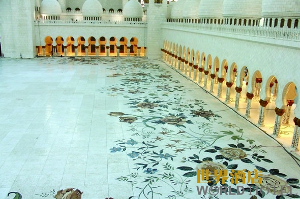 在中東,除了阿聯酋皇宮酒店之外,環球另一個經典項目便是謝赫阿布扎比清真寺,這座清真寺是為紀念阿聯酋開國總統扎耶德而建,2007年正式建成,總耗資達55億美金,是目前世界上最大的皇家伊斯蘭寺院,也被視為阿聯酋第一清真寺。在項目中,環球采用世界首創的貝殼鑲嵌入石材工藝圓柱及將傳統的水刀拼花從直線型轉為垂直流線型的工藝,成功塑造96根高達8米渾然一體的貝殼拼花圓柱。