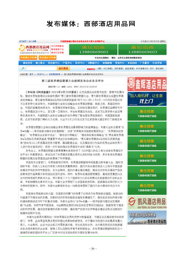 2013第三屆世界酒店聯(lián)盟大會特邀領(lǐng)導(dǎo)及免費