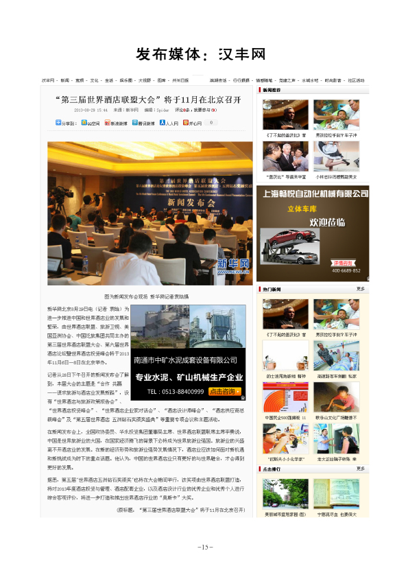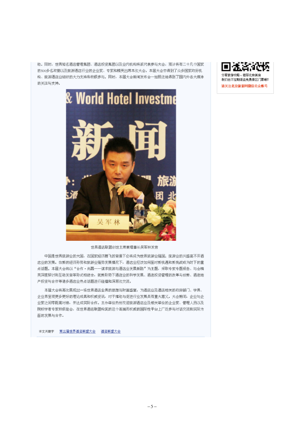 第三屆世界酒店聯(lián)盟大會新聞發(fā)布會媒體簡報