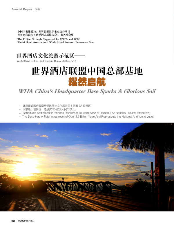 世界酒店聯盟已于2014年10月7日同海南呀諾達雨林文化旅游區正式簽署《框架合作協議》,計劃將“世界酒店聯盟中國總部基地”正式落戶海南呀諾達雨林文化旅游區,聯盟繼2014年第二次主席辦公會后將在北京召開新聞發布會更全面地通報有關情況。