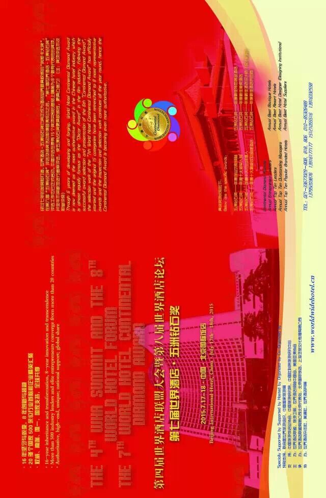 The event is in special support from UNWTO and CNTA. It is jointly hosted by World Hotel Association, the Travel Channel, World Hotel China Leaders Club and AsiaSociety and the event is co-organized by Beijing Rep. Office of World Hotel Association, Shanghai Pan-tourism Culture Communication Co., Ltd. and Beijing International Hotel. Lv Haiyan, Wu Junlin and Li Yong will be presiding over the conference and the 7th World Hotel·Continental Diamond Award (a.k.a the hotel industry's Academy Award,) will also be part of the event.