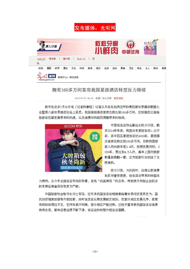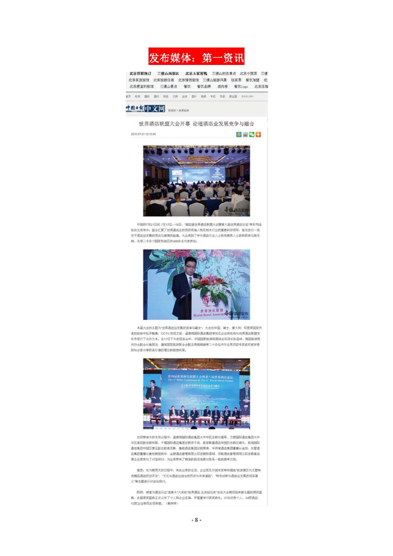 第四屆世界酒店聯(lián)盟大會暨第八屆世界酒店論壇媒體簡報