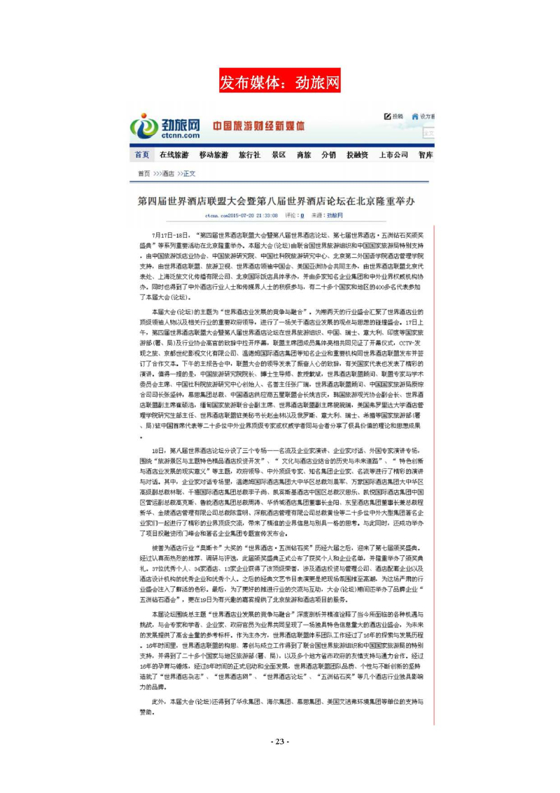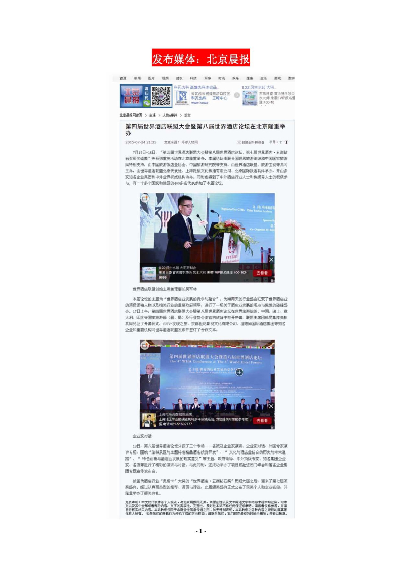第三屆世界酒店聯(lián)盟大會新聞發(fā)布會媒體簡報