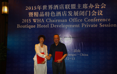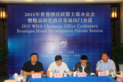 On Sept. 12th, the 2015 WHA Chairman Office Conference & Boutique Hotel Development Private Session took place in Sanqingshan International Resort. An exclusive tour into Mount Sanqing and Wuyuan was arranged, a total number of over 30 representatives including WHA Counsellors, Chairmen, Standing Committee Members, Vice-Chairmen, Secretary-Generals and industrial leaders, elites and authorities were present at the conference.