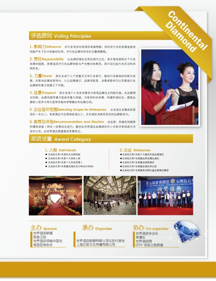 - 五洲鉆石獎·年度最具發展價值酒店集團Continental Diamond Award·Annual Most Promising Hotel Group