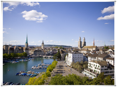 早上9:00 出發,開車前往蘇黎世(5 小時10 分),抵達后游覽蘇黎世,欣 賞市區風光。