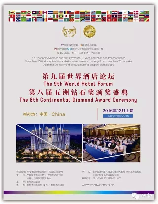 Annual industry top gala-the 9th World Hotel forum and the 8th Continental Diamond Award Ceremony is about to begin. This forum will be held in China and the site is under hot selection. Welcome all local governments and hotel entreprises contact us and negotiate!( Reply to the official account to contact us.)