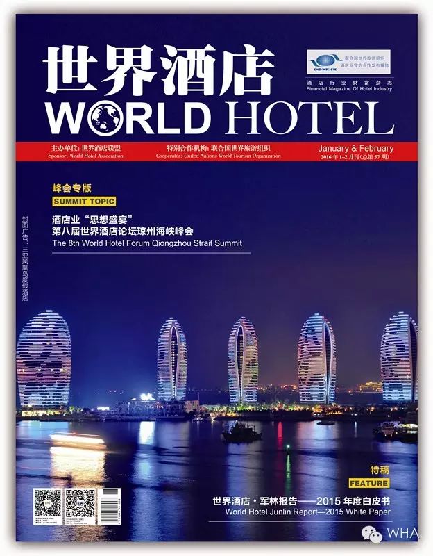 "World Hotel" magazine is reputed as the hospitality industry's Fortune Magazine which is run by World Hotel Association, it’s the exclusive information repository for the industrial elites. The magazine targets at authorities from home and abroad as well as hotel investors, operators, industrial elites, high-end businessmen and top-notch resort groups. It is a recognized high-end brand magazine. For a straight row of 9 years, the magazine has obtained popularity and left a profound significance on tourism and hospitality industry, hotel investment and industrial management.There are "World Hotel" magazines in 22 cities' airport VIP rooms of southern airline group throughout the country. The magazine majorly covers over 10 important columns, such as Special Report, China Leaders Club, Industry, Global View, Hotel Investment & Financing, Business Idea, Operation & Management, Design Frontier, Artworks. To take the magazine to a higher level, we hereby send out our solicitation letter to global professionals and elites, we sincerely appreciate those who help to make a change.
