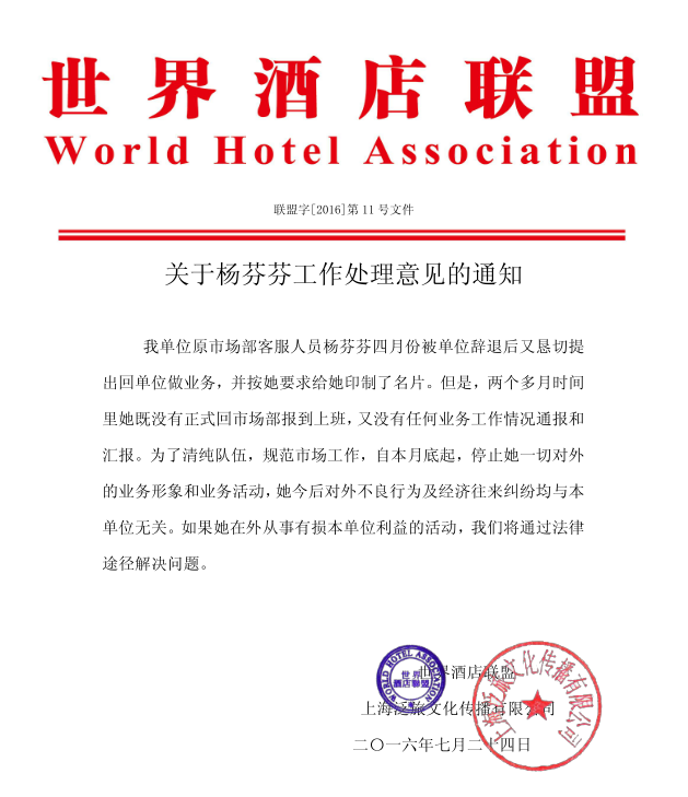 【特訊】美女主編黃婷婷任世界酒店聯(lián)盟主席