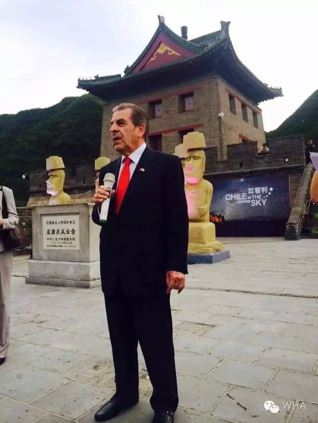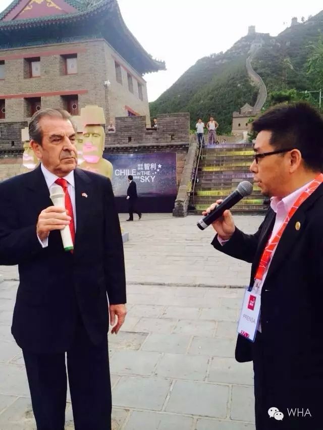 8月31日傍晚,受智利國家前總統及亞太區特命全權特使愛德華多·富雷的邀請,世界酒店聯盟主席吳軍林(泛旅文化集團創始人)在北京長城參加“2016智利周及醉美智利國家風情展開幕酒會”活動上進行了關于“中智旅游交流合作及未來發展異同”主題的對話和訪談,在吳主席的提問下,愛德華多·富雷先生主要談到了:1.智利是一個旅游資源十分豐富的國家,在旅游業發展方面有良好的前景和空間;2.中國是旅游大國,智利和中國未來要進行旅游業務更緊密的合作,并有很好的互補性;3.我是前任總統,但我還可以利用影響力和現在的身份去為智中兩國旅游事業更好發展做些力所能及的工作。在對話和訪談期間,吳軍林主席也著重說明了中國旅游業的現狀美好和蓬勃發展之處。在參加開幕酒會上,吳主席和智利國家經濟貿易部副部長、農業部副部長、智利國家駐中國大使館大使等進行了交流。在長城上,中國華為集團全程贊助了“2016智利周暨醉美智利國家風情展開幕酒會”活動。參加本次活動的智利國家政要、中智方面企業家、各國媒體記者等有200多人。