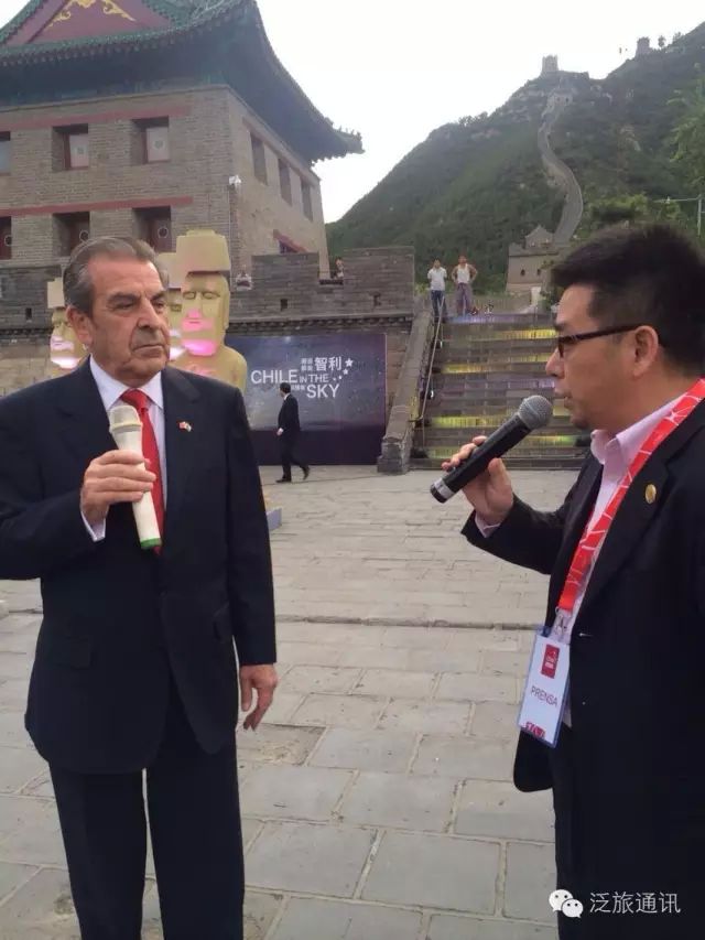 吳軍林主席和智利國家前總統及亞太區特命全權特使愛德華多·富雷在長城上對話