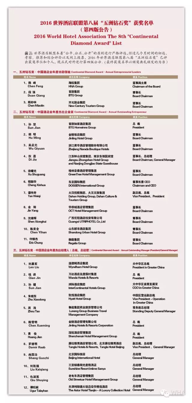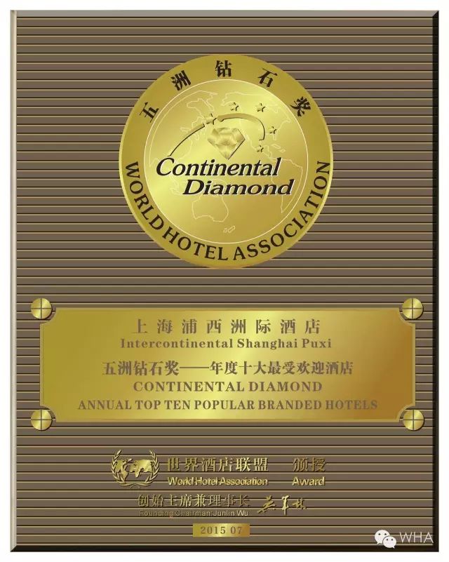 Good news---- Announcement for Awards of World Hotel Association’s 8th “Continental Diamond Award” of 2016 (The Fourth Batch)
