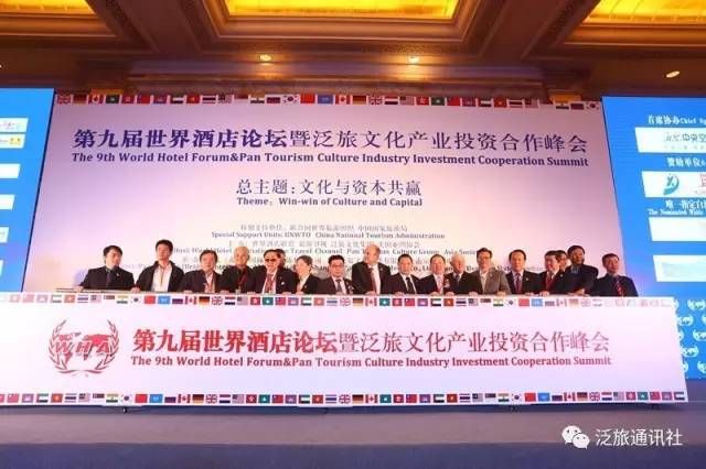 9日上午,第九屆世界酒店論壇暨泛旅文化產業投資合作峰會在聯合國世界旅游組織、中國、法國、德國等國家旅游主管部門以及國際旅游聯合會和有關行業協會高官的致辭中拉開序幕,聯盟主席團成員集體亮相共同見證開幕儀式。參加論壇會議活動和致辭嘉賓:江蘇省副省長張雷,中國國家旅游局原黨組成員、原副局長吳文學,世界華商聯合會總會長、美國亞洲協會主席蔣一成,國家人防辦原副主任王勝利,河北省人大原副主任宋長瑞,世界酒店聯盟創始主席兼理事長、世界酒店論壇主席、泛旅文化集團董事會主席吳軍林,中國輿情戰略研究中心副主任陳順初,中國旅游協會副會長、開元旅業集團董事長陳妙林,中國旅游飯店業協會副會長、金陵飯店集團董事長湯文儉,中國旅游飯店業協會副會長、海南省旅游協會執行會長張會發,美國佛羅里達國際大學Mike Hampton院長,法國共和黨全國委員、國際旅游聯合會執事及亞洲大區主席、法中文化交流促進中心主席蔡垂彪,國際旅游聯合會主席埃里克•杜履克先生,中國國賓館協會主席高建國,世界華人企業家協會執行主席余順標,中國旅游出版社副總編輯張潤生等。開幕式上,國際旅游聯合會正式聘請吳軍林擔任該聯合會副主席兼大中華主席,該聯合會主席埃里克•杜履克先生專門為吳軍林頒發了聘書和“金質勛章”。
