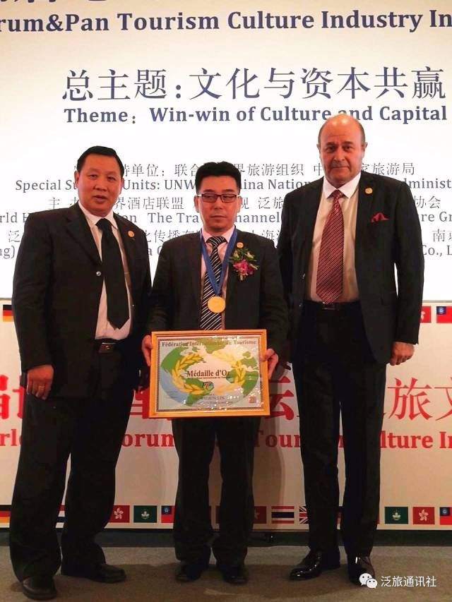 從左到右:法中文化交流中心主席蔡垂彪、世界酒店聯盟創始主席兼理事長吳軍林、國際旅游聯合會主席Eric Duluc