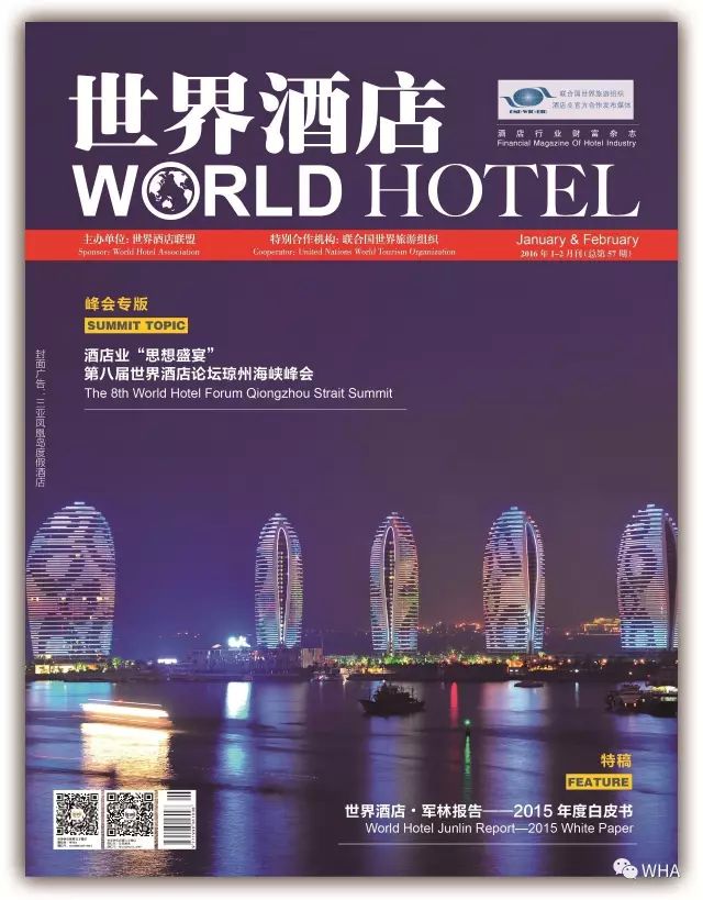 The WHA System is comprised of "World Hotel" magazine, World Hotel Website, WHA Official WeChat Platform and Pan Tourism Newswire, World Hotel Forum, World Hotel Investment Summit, Continental Diamond Award, World Hotel China Leaders Club, World Hotel Brand Research Center, Continental Diamond Hotels, Hotel and Travel Product Design Center providing services like media, culture, consultancy, exhibition, planning and design and wide-ranging cooperation. The investment operating organization in Greater China is Pan Tourism Culture Group, and its executive organizations are: Shanghai Pan Tourism Media Co., Ltd. and Pan Tourism (Beijing) International Media Co., Ltd. The World Hotel Association entertains over 100 enterprise council members, more than 5,000 four and five star-rating hotels and large-scale enterprise members, with its business disseminating across the world.