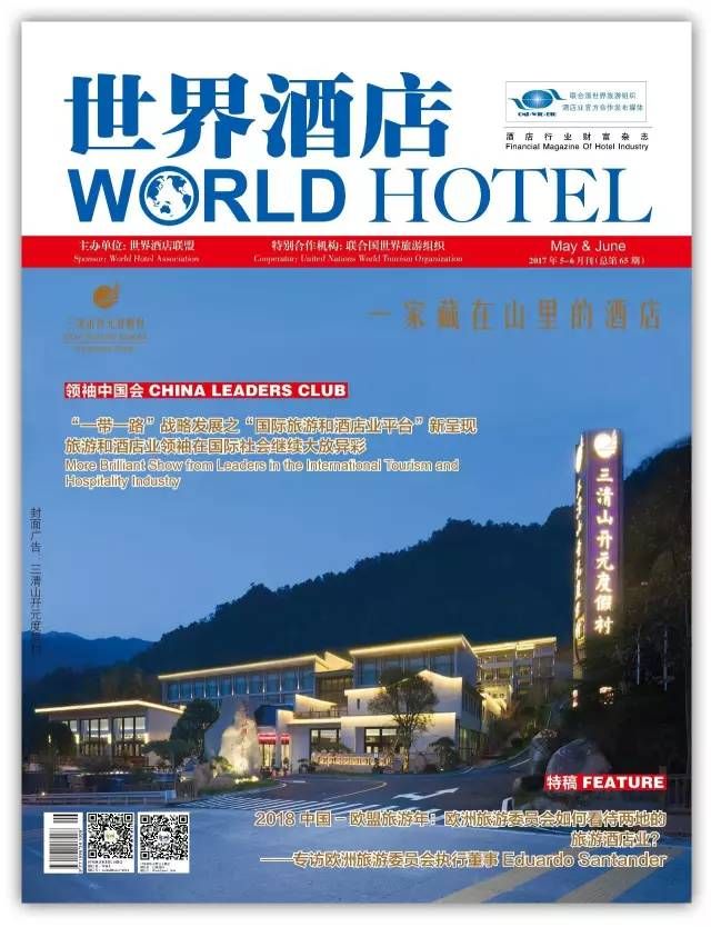 Hello, everyone. Here is a first look of the cover of the newest World Hotel magazine, detailed contents will be published this month. The advertisement on this cover will be New Century Resort Sanqingshan Jiangxi.