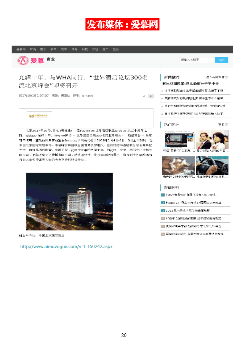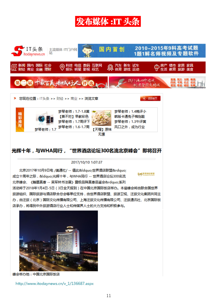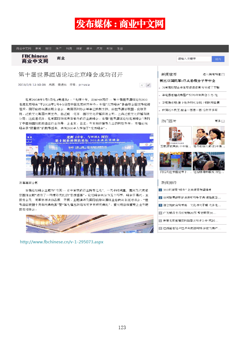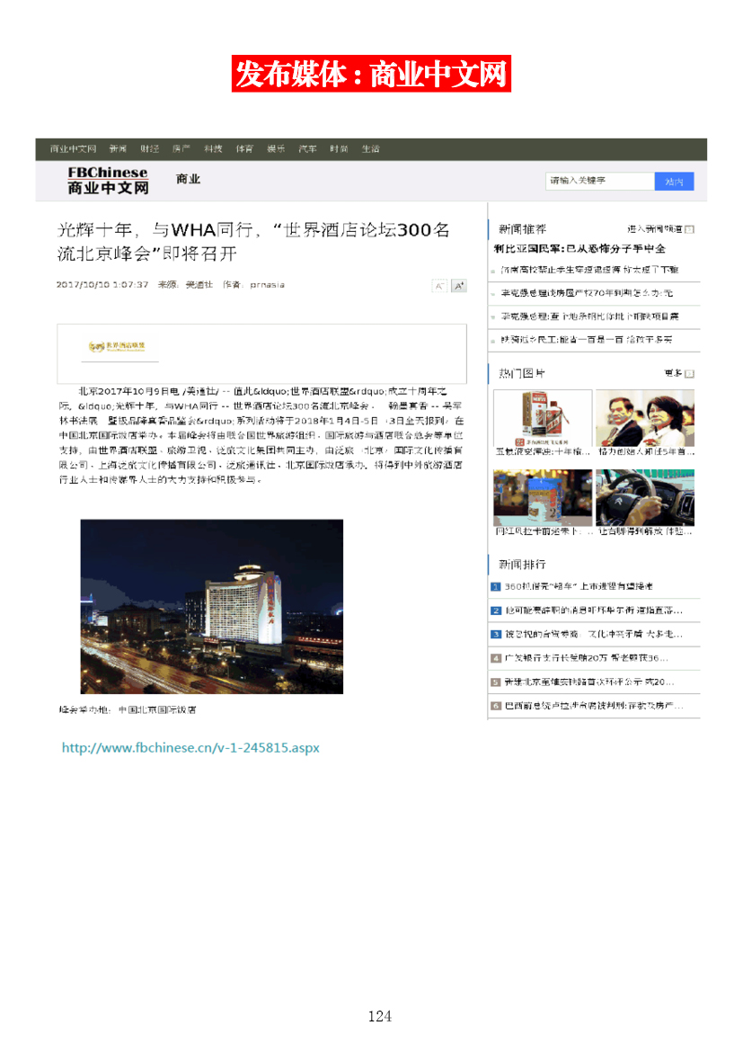 光輝十年,與WHA同行——第十屆世界酒店論壇北京峰會媒體簡報