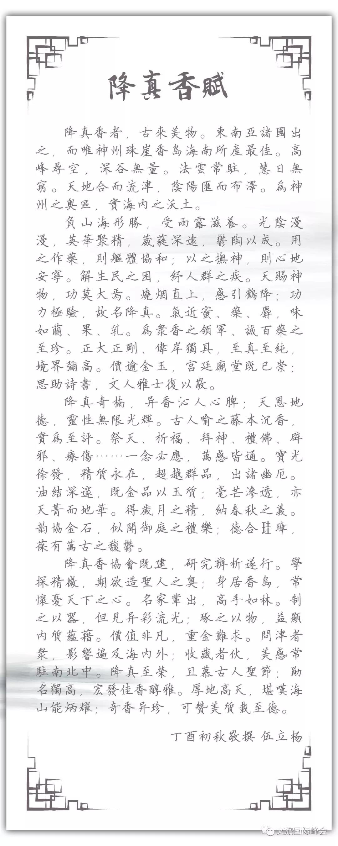 “降真香”不僅是“香中之魁”,而且是“藥中極品”(是黎藥之首,能治諸多疾病,特別是刀傷、蛇咬、疑難雜癥等,對癌病患者有療效),它不僅是饋贈親友的“獨一無二”的高雅禮物,而且它的升值空間很大,按當下收藏界預測,未來三五年后將會升值50-100倍,關鍵是它目前還沒有真正找到嫁接和種植的辦法。到目前為止,吳軍林主席在海南、緬甸、老撾精選收購上好的“降真香原材料”兩噸多(其中極品類一噸多),并聯手幾位藏家收藏有二十噸左右,如此量級,五年后市值將會達到100億元人民幣左右,這是一個很好的“精耕細作的產業鏈”!如今,全國寺廟、道觀、各大醫院、各大酒店和社會名流階層等對“降真香”精油、香粉、線香、文玩、藝術品等的需求量會越來越大!歡迎您關注垂詢,歡迎廣泛合作,歡迎共同收藏,我們將特惠價讓利給同道中人!
