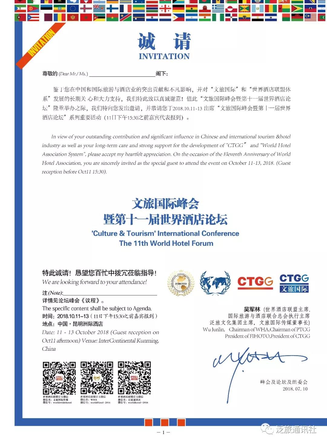 尊敬的各位業界領導、同仁、名流及媒體朋友們,您們好!首先感謝您們長期以來對我們的大力支持和關愛!未來在中國將會出現更多的國際性論壇(會議、展覽)平臺,這是一個必然的大趨勢。今年,我們將在“七彩云南”省會昆明舉辦“文旅國際峰會暨第十一屆世界酒店論壇”,我們誠摯邀請您出席本屆論壇峰會,因為有聚合和面對面交流才會有更多的牽手和多贏機會。讓我們今年十月相會在中國春城昆明; 讓我們在行業中的思想智慧和經驗成果在全球范圍內得以良好傳播和分享。平臺無論是在中國還是在歐美,無論是在都市還是在邊城,其傳播和收獲的效果都是一樣的,最主要的是會議要重視創新品質和高度價值!我們在這里,真誠歡迎您,并希望您給自己一個絕佳出場機會!